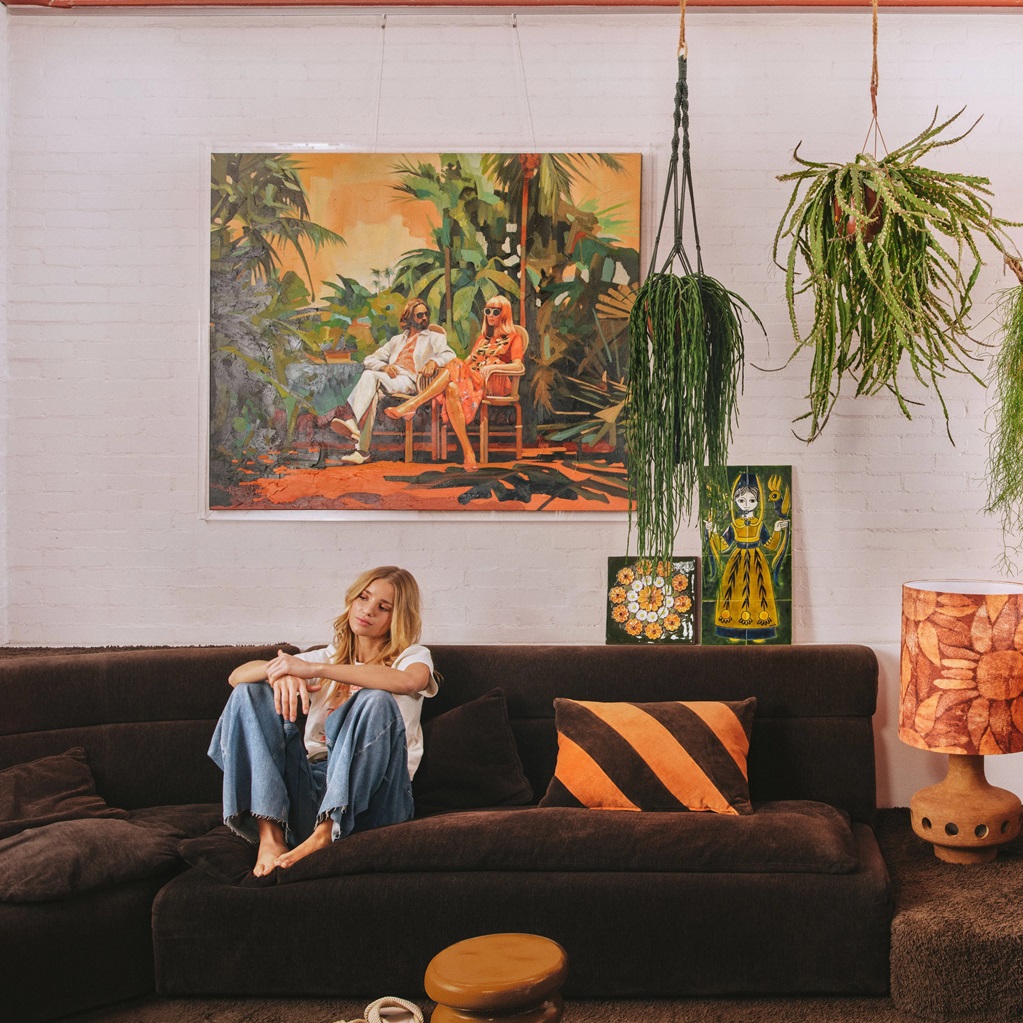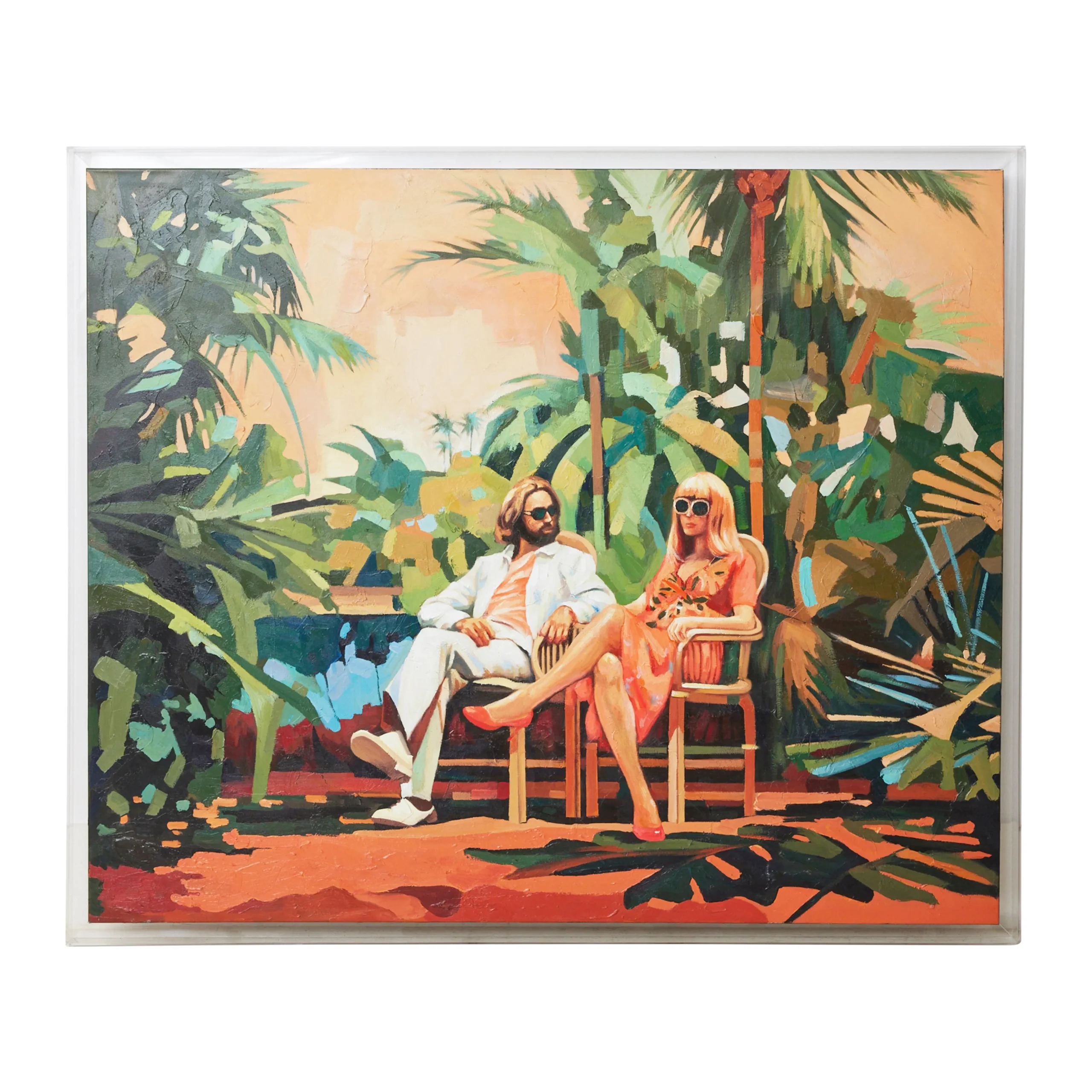 Conversation. Een serene weergave van downtime en de natuur, met twee mensen die luieren in een weelderige tropische omgeving, wat de zorgeloze en avontuurlijke geest van de jaren ’70 oproept. Een perfect statement piece voor degenen die de esthetiek van een vervlogen tijdperk en de tijdloze aantrekkingskracht van de charme van de natuur waarderen. Of het nu het middelpunt van een woonkamer is, een opvallende toevoeging aan een slaapkamer of een gespreksstarter op kantoor; dit stuk is veelzijdig en krachtig.