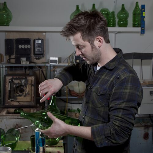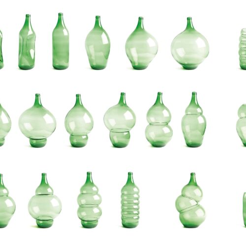 Ondanks dat het in massa geproduceerd was, ontdekte Klaas onregelmatigheden in de groene glazen flessen. Elke keer bleek bij het doormidden snijden, de dikte van het glas steeds te verschillen en anders te zijn. Om die verschillen te benadrukken, bouwde Klaas zijn eigen glasblaasinstallatie bestaande uit een aangepaste oven en een compressor. Door eerst de flessen in de oven te verhitten en vervolgens met de compressor voorzichtig wat lucht naar binnen te blazen, puilt het glas meer uit op de dunnere plekken en minder waar het dikker is. Zo krijgen de flessen hun nieuwe, unieke vorm. Door veel te experimenteren met warmte- en drukverschillen (en later talloze explosies en gebarsten flessen), kreeg Klaas eindelijk de techniek onder de knie om een coherente familie van individueel gevormde groene flessen te creëren.