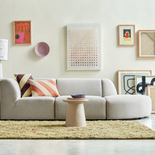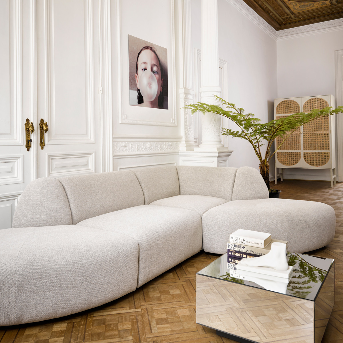 De stijlvolle Jax bank van HKliving heeft een uitnodigend karakter door de ronde elementen en royale zitting. Dit in combinatie met de kleine poten, maken deze bank een echt designer meubel. Deze gestoffeerde zitbank is volledig naar eigen wens samen te stellen. Kies uit diverse opstellingen en kleuren. De bank is ook heel praktisch. Ga je je interieur veranderen of verhuizen? Je kunt alle kanten op met de losse elementen. Zo heb je jarenlang plezier van de HKliving Jax.