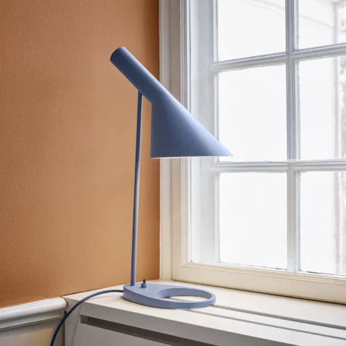 Het verhaal: In 1957 werd de AJ lamp specifiek ontworpen voor het SAS Royal Hotel in Kopenhagen. Hij behoort inmiddels tot de belangrijkste designiconen van Arne Jacobsen. Oorspronkelijk bestond de productlijn uit een vloerlamp, een wandlamp, een tafellamp en een kleinere tafellamp, evenals een tafellamp die ontworpen was voor bevestiging aan de tafel. De AJ vloerlamp heeft een iconische, grafische uitstraling die prachtig past bij de designstijl van Jacobsen en contrasteert met de kromming van een aantal meubels in het SAS Royal Hotel. Het tijdloze ontwerp van de lamp maakt hem geschikt voor elk interieur en in de loop der jaren zijn de kleurenpaletten aangepast aan de moderne interieurtrends.