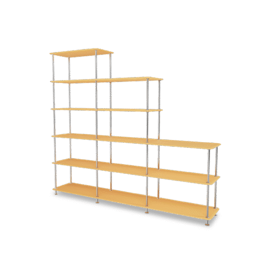 Montana Free 542000 is een minimalistische kast die kan worden gebruikt als roomdivider of als display kast in een werkruimte, de keuken of de woonkamer. Deze asymmetrische kast is 5 vakken hoog en drie planken breed. De boekenkast is verkrijgbaar in de kleuren New White, Black, Fjord, Black Jade, Beetroot, Masala en Mix Iris-Masala. Optioneel zijn de gestoffeerde panelen die worden tussen de buizen geklikt aan de voor- of achterkant van de kast om te spelen met de transparantie. De panelen zijn in acht verschillende kleuren verkrijgbaar.