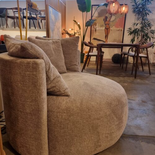 De Pastille Lounge met draaivoet is een elegante, eigentijdse fauteuil met een zachte, uitnodigende uitstraling. De ronde vormen en vloeiende belijning geven de stoel een vriendelijk karakter, terwijl de draaifunctie zorgt voor extra comfort en flexibiliteit in gebruik. Ideaal in een zithoek, bij een bank of als losse statement chair in de ruimte.
