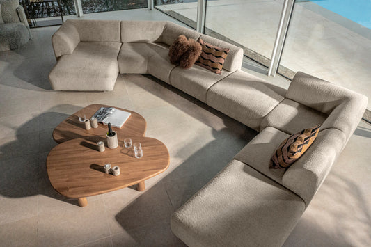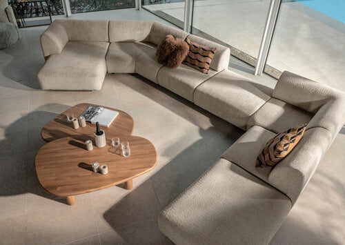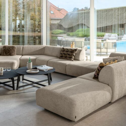 Ja, de Saki is volledig modulair. Kies zelf de gewenste opstelling, van compacte 2-zitter tot royale hoekbank met ottomane of poef.