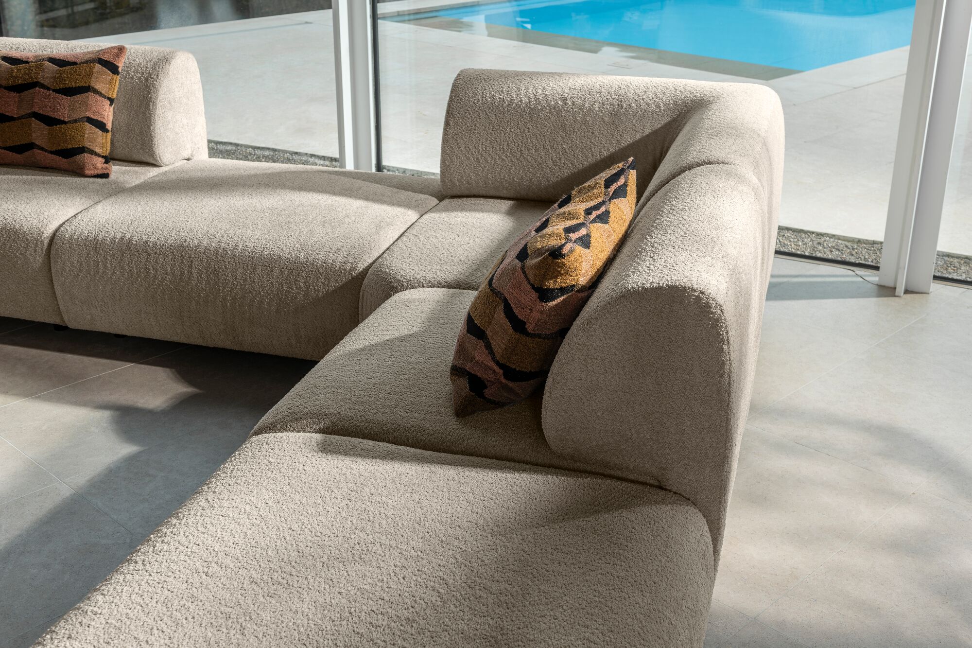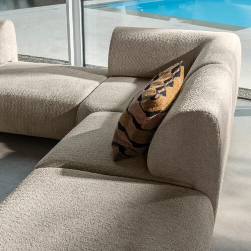 De Saki bank kan worden bekleed in talloze stoffen, waaronder bouclé, velours, linnenmix en microvezel. Onze adviseurs helpen graag bij het kiezen van de juiste stof en kleur.