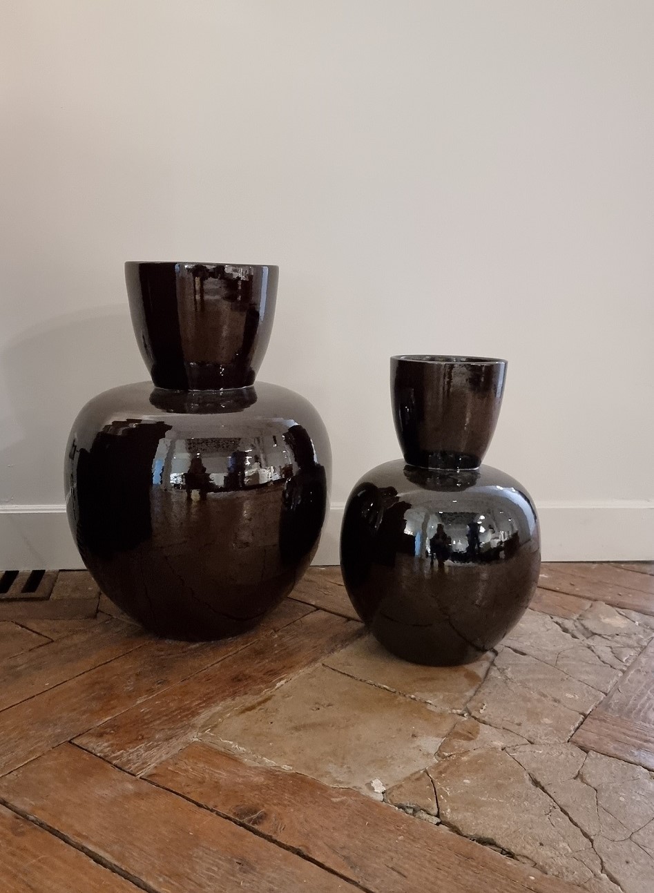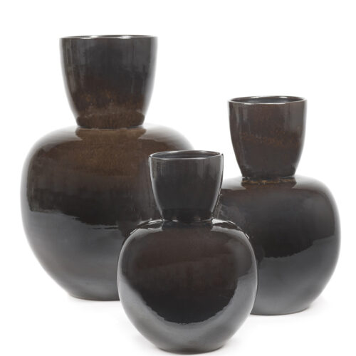 De combinatie van bruin en zwart geeft deze vaas een diepe, warme look. Het glazuur zorgt voor subtiele verschillen in kleur en maakt iedere vaas net even anders. Daardoor is hij mooi als los object, maar ook goed te combineren met andere items.