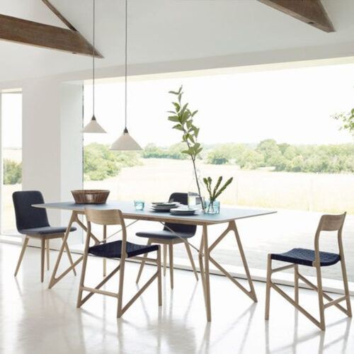 - Handgemaakt van massief eikenhout met linoleum blad. Afwerkingen poten in eiken natural- of white oil, smoked oil en European Walnut in natural oil.