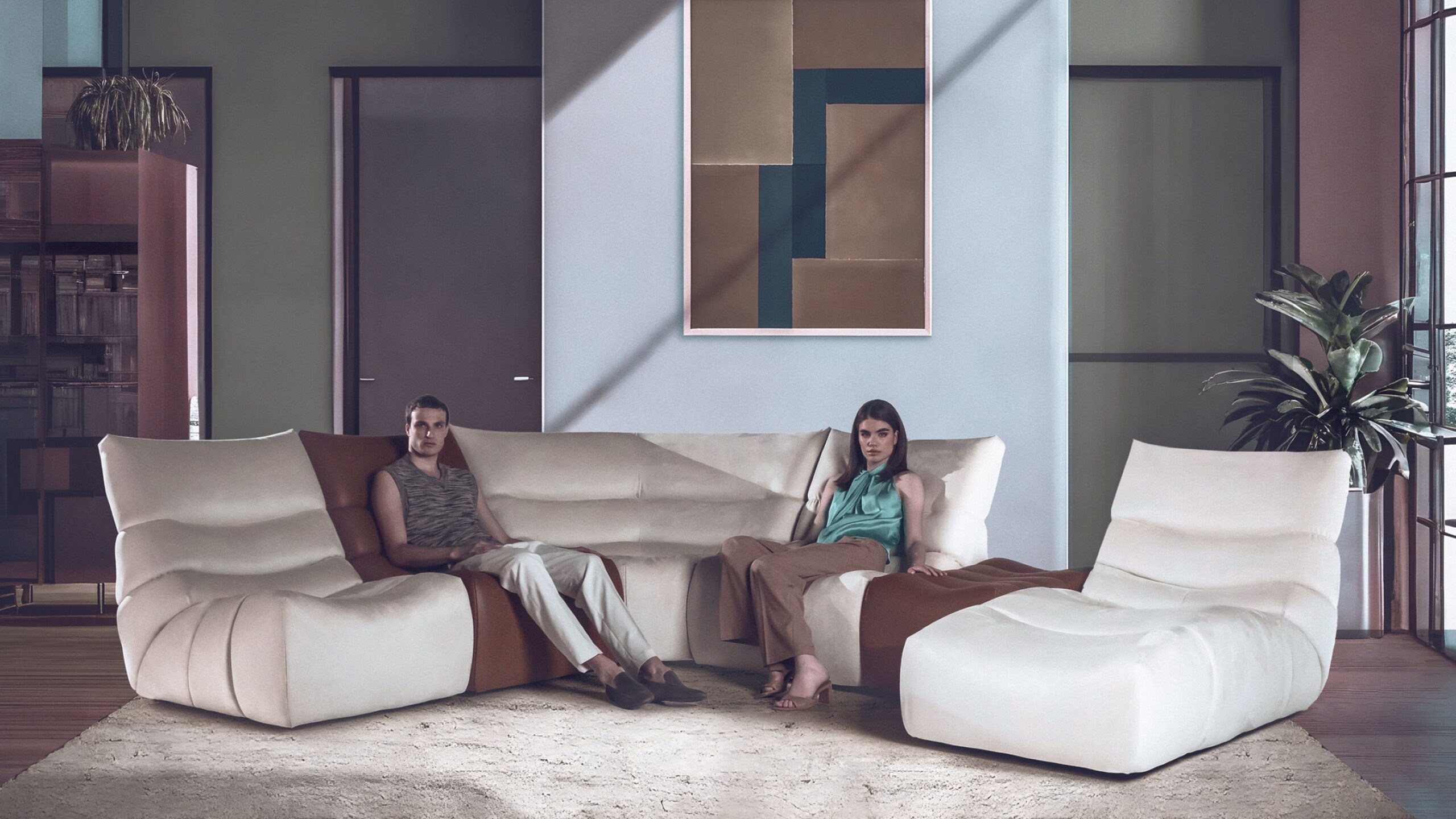 Het bandvormige ontwerp, dat de bank als het ware omarmt nodigt uit tot ultieme ontspanning.