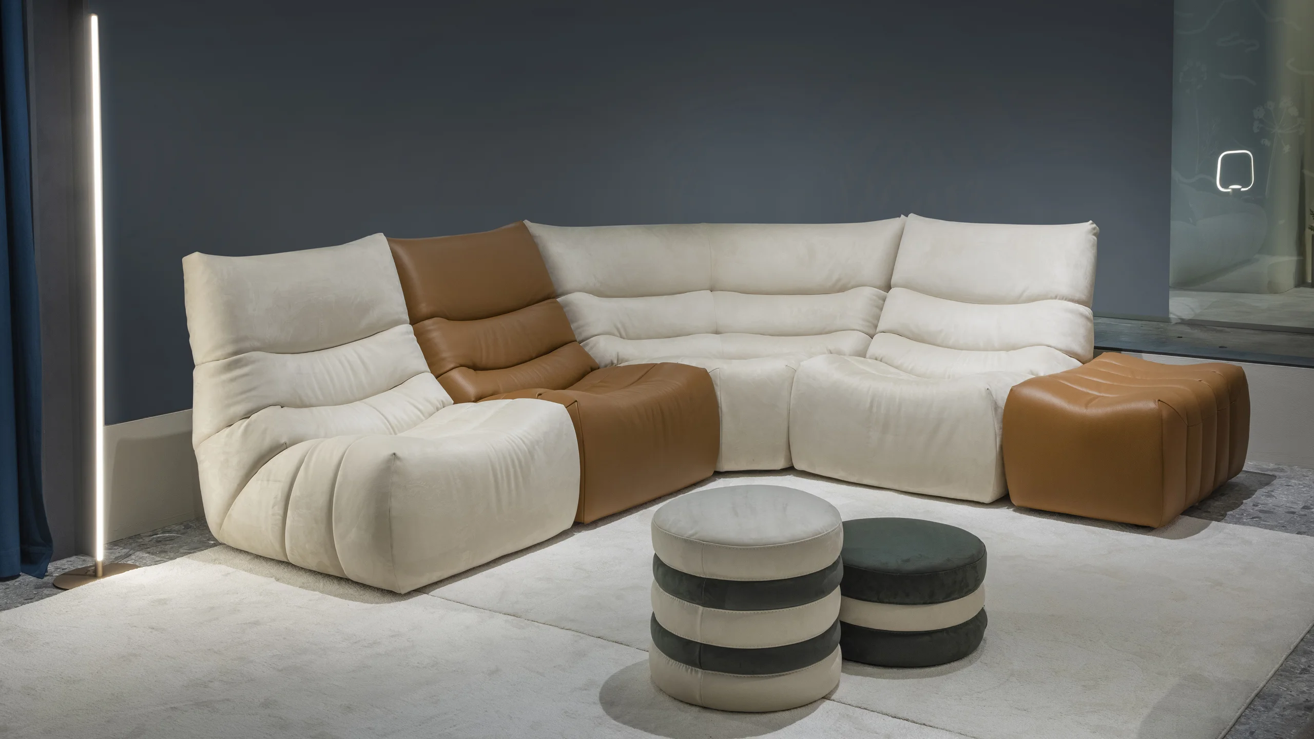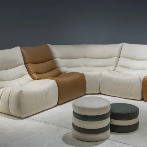 Het model is ook beschikbaar in vaste versies (2-zits en chaise longue) en modulaire opties. Flexibel aan te passen aan verschillende ruimtes en stijlen.