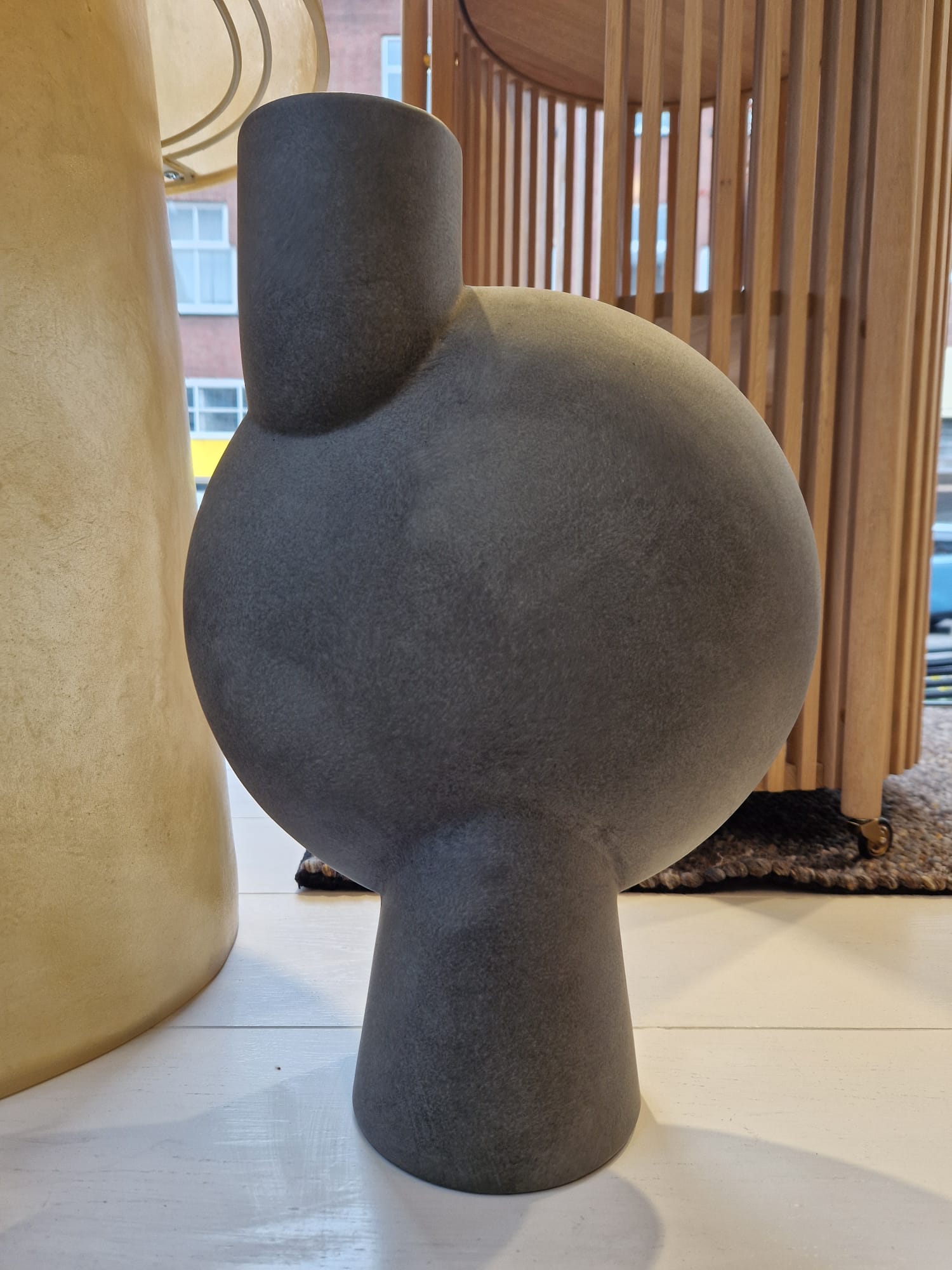 De Sphere Hexa Bubl vaas van 101 Copenhagen is vervaardigd van aardewerk en uitgevoerd in het grijs. De vervaagde aardetinten zijn kenmerkend voor de Sphere-collectie die is ontwikkeld in nauwe samenwerking met zeer bekwame keramisten, waardoor het precieze contrast tussen de gladde vormen en scherpe randen wordt gegarandeerd. Omdat het een met de hand geglazuurd natuurproduct is, kunnen de kleuren enigszins variëren en hoewel het niet 100 % waterdicht is, wordt er een tas voor verse bloemen meegeleverd. Prachtig te combineren met de andere vazen uit de serie.